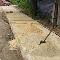Создание подушки для укладки тротуарной плитки возможен только песком или щебнем, а также и песком и щебенем. толщина от 10 см до 30 см